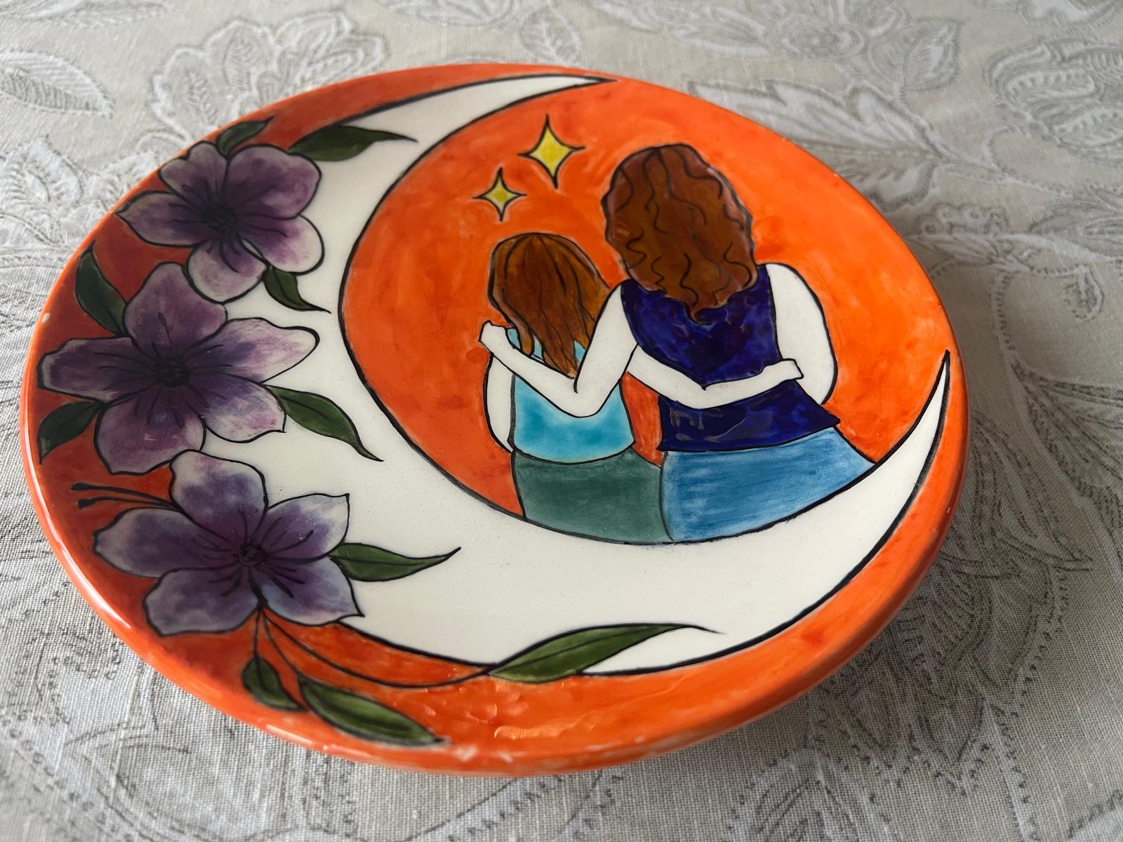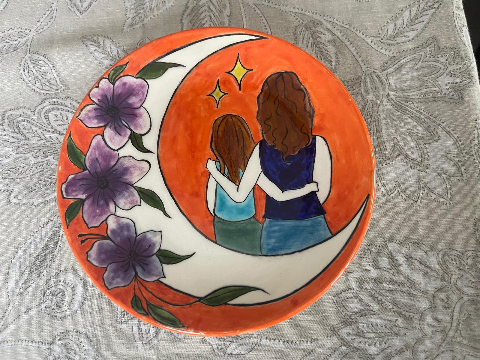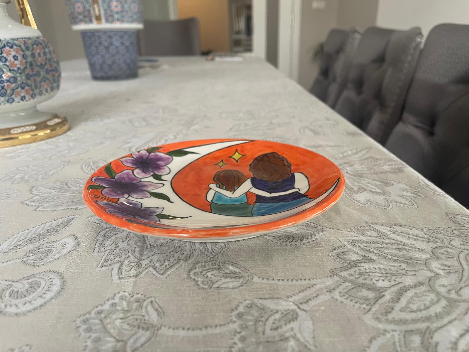 Anne Kız Temalı El İşi Tabak